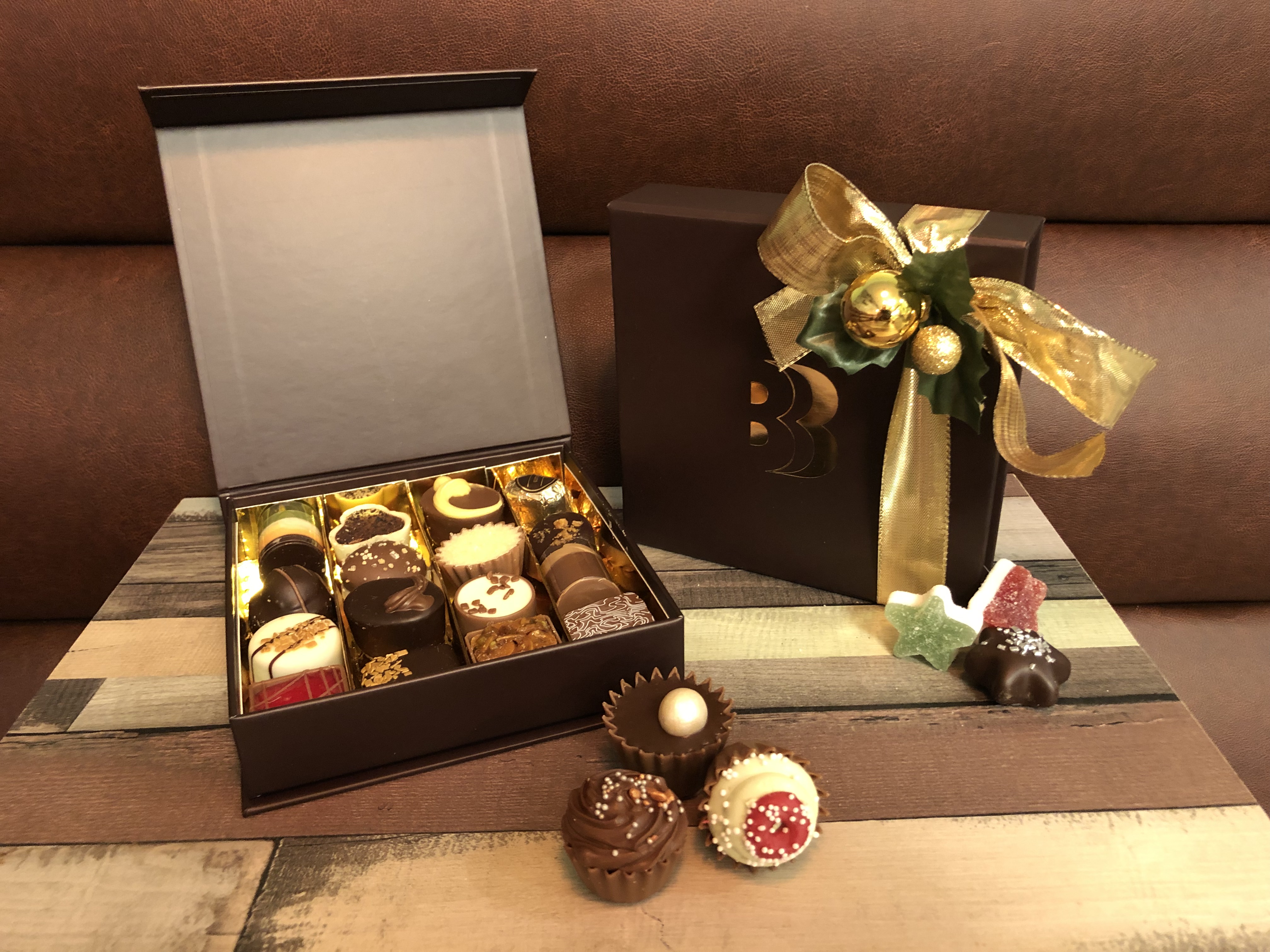 Een prachtige kadobox gevuld met 16 heerlijke bonbons.